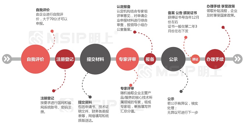 2、專業(yè)團隊申報業(yè)務涉及法律、技術、財務各方面,明上組織并整合經(jīng)驗豐富的專業(yè)人員,通過團隊協(xié)作、完善分工,完成申報認證。